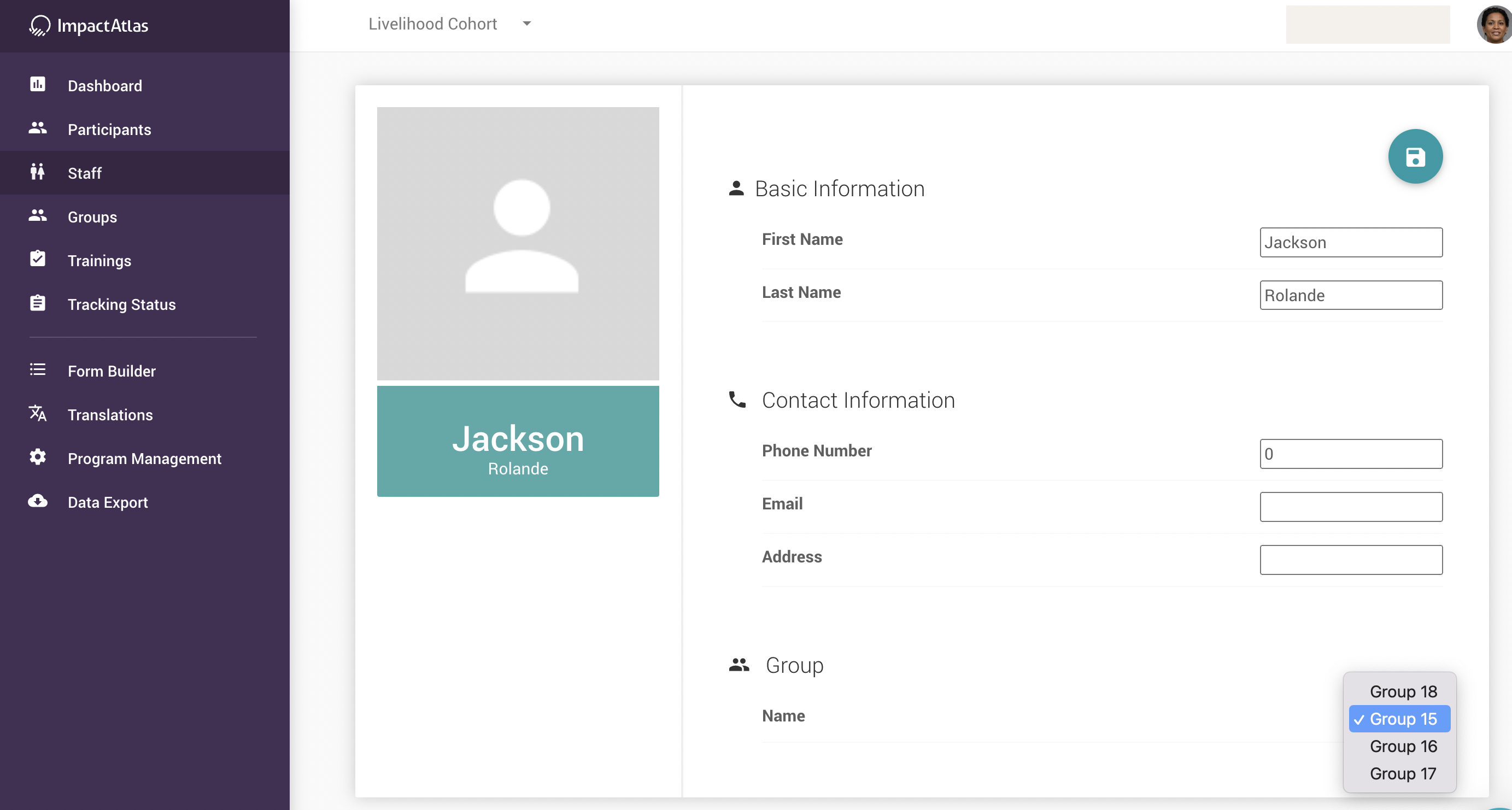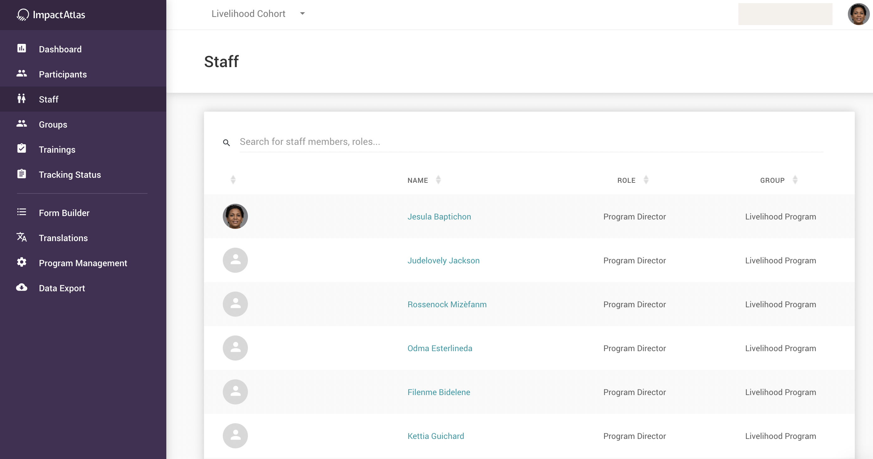 Within the staff page, search for the user you would like to change the group and once you find it, click on it. Note: you can search either scrolling down the list or using the search functionality:
