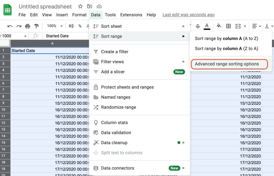 7- Select all data > go to Data > Sort range > Advanced range sorting options
