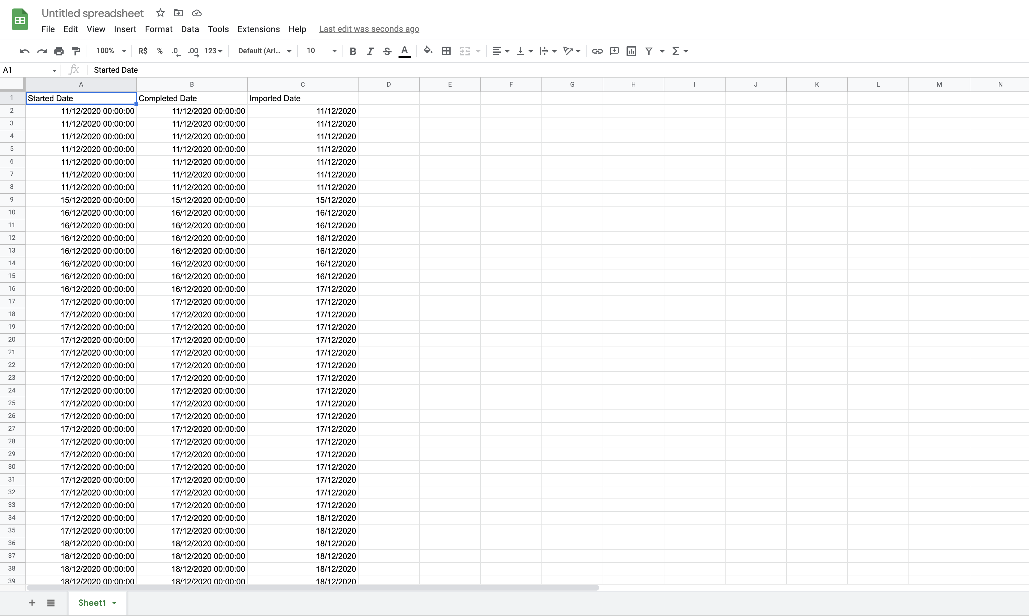 1- After exporting the data from IA web. You are going to open a new spreadsheet.