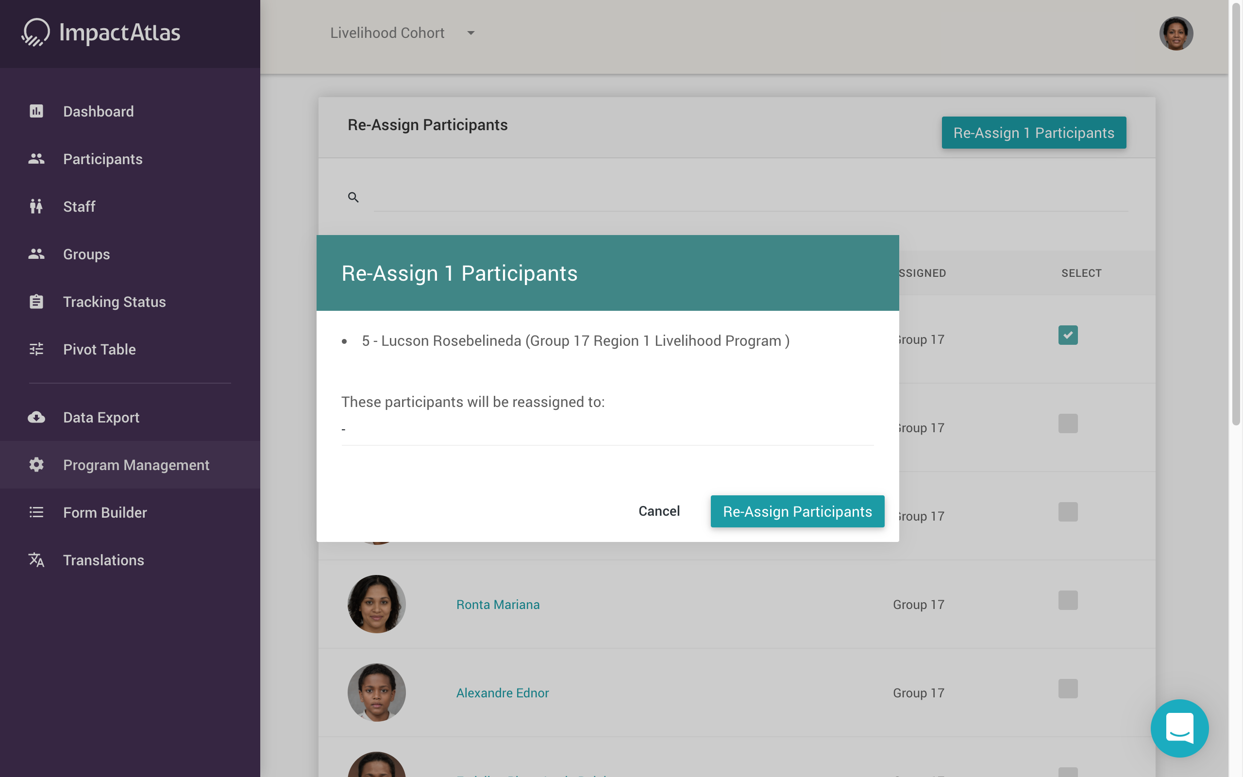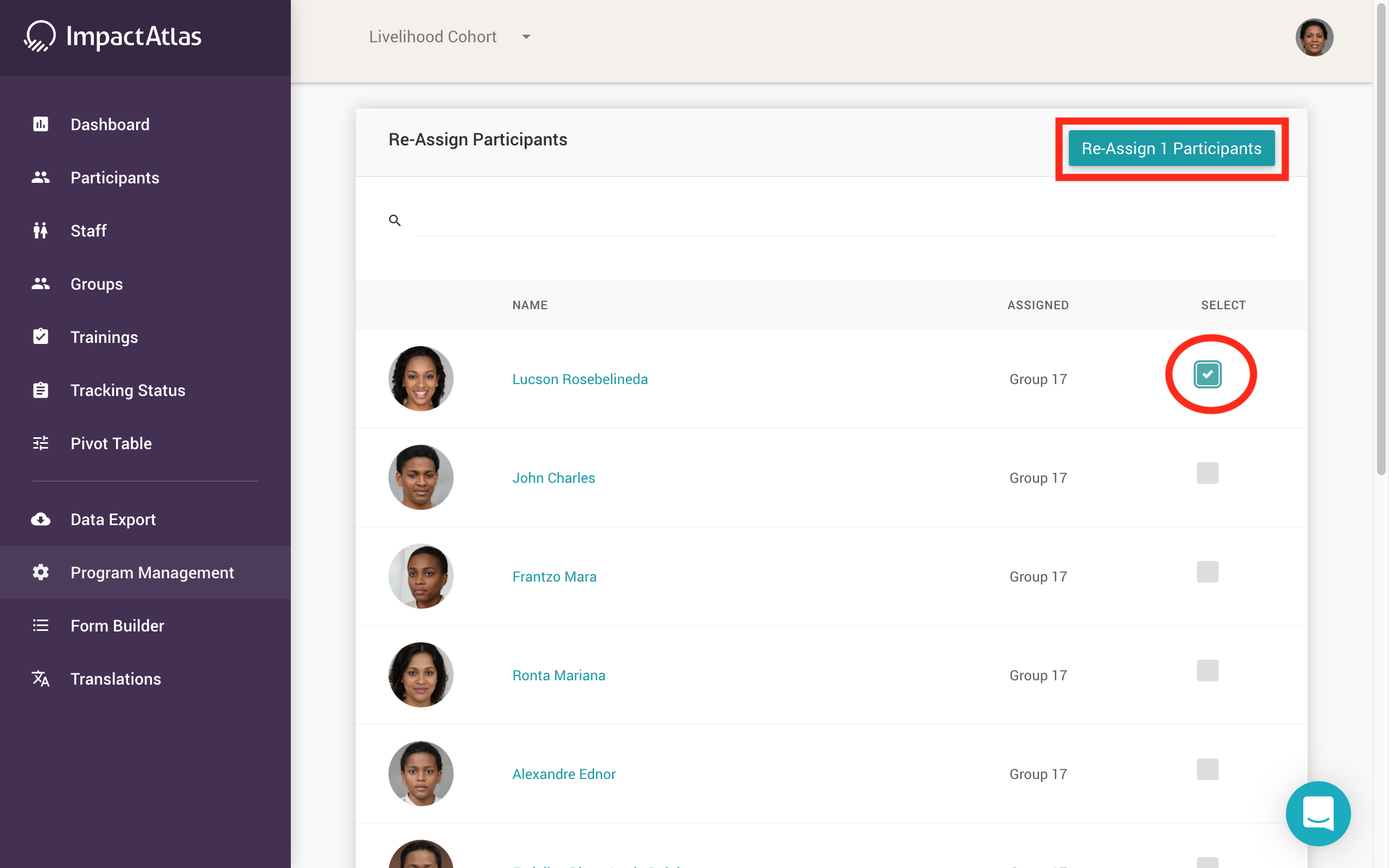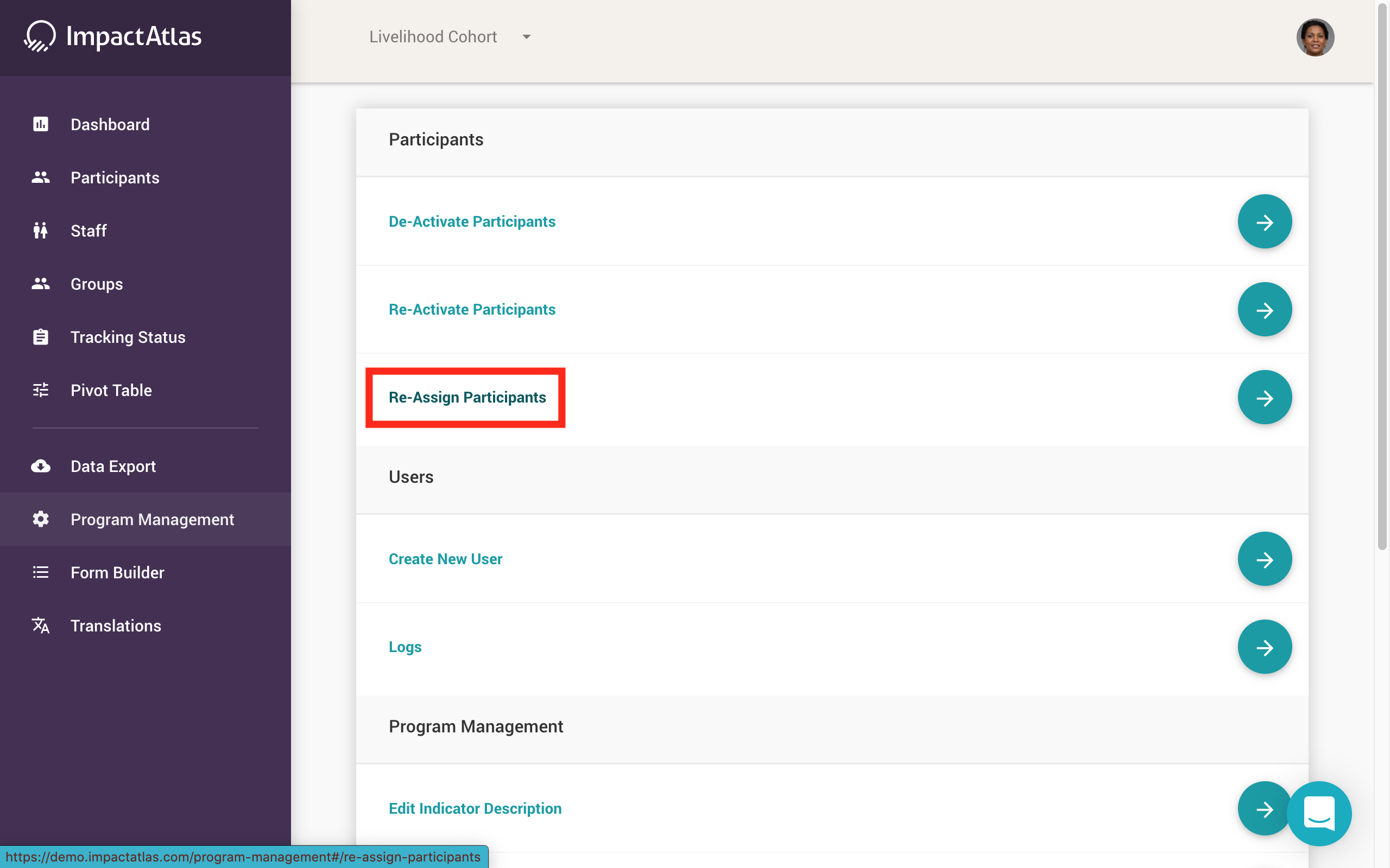 To reassign participants, you will need to go into “Program Management” on the left navigation.