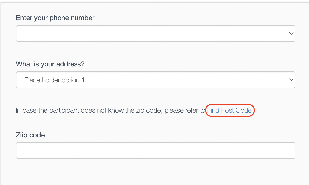 Text is: In case the participant does not know the zip code, please refer to