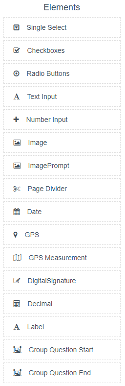 Group Questions: Allows the participant to answer a multiple-part question. Simply drag and drop other elements within the group. First drag Group Start, then drag Group End and then drag the elements you want in between.