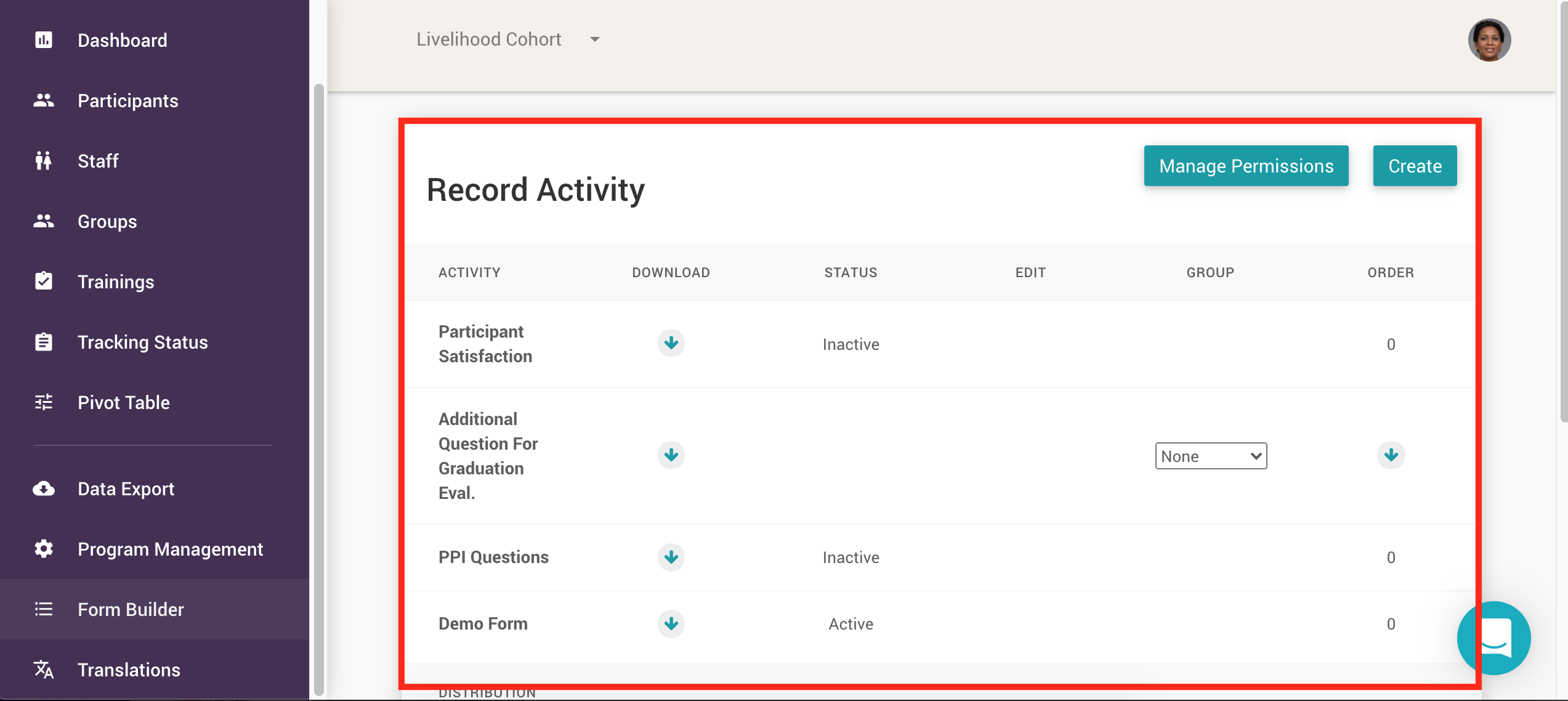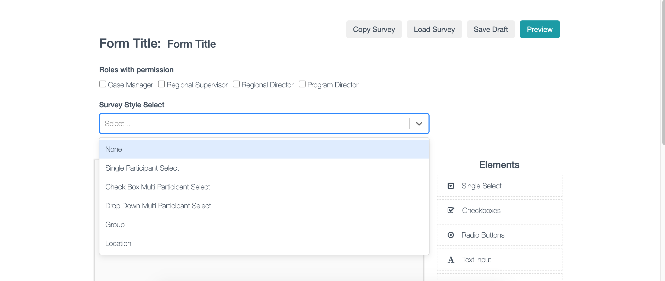 The Form Builder tool is the way that you can create single and multi-participant surveys for your program.