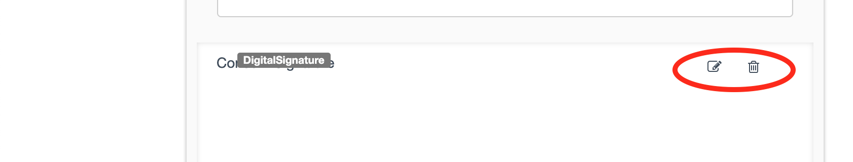 However, some fields, such as the Digital Signature, can be edited or deleted by selecting the trashcan icon. See the picture below for an example: