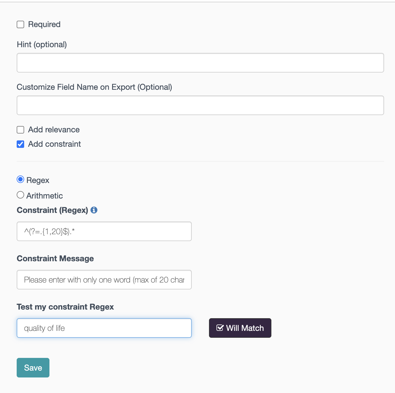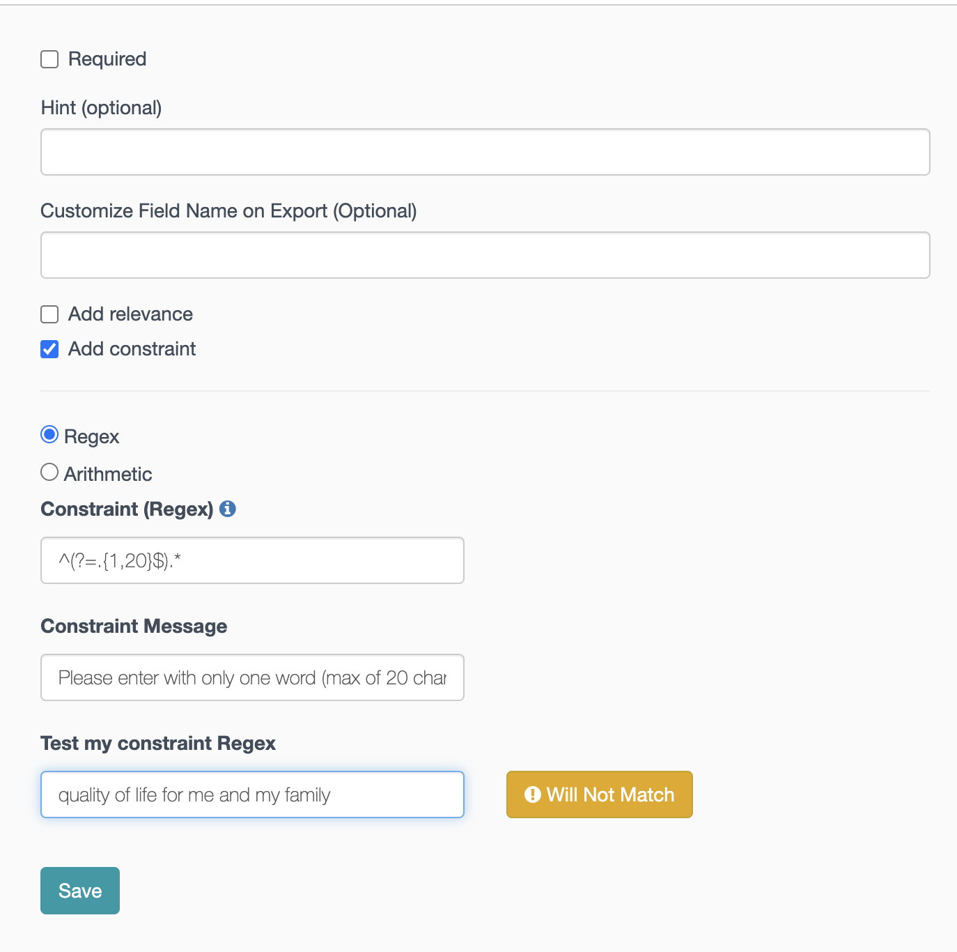 Let’s say that you want to understand how your participants would define the impact of your program in few words. You could use the length constraint to guarantee they will not right a whole paragraphic.