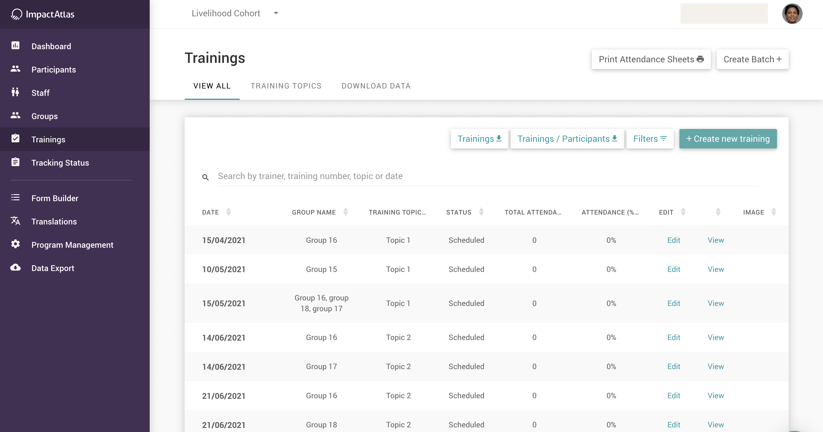 Once you click on "Training Topics", all topics will be listed as shown below: