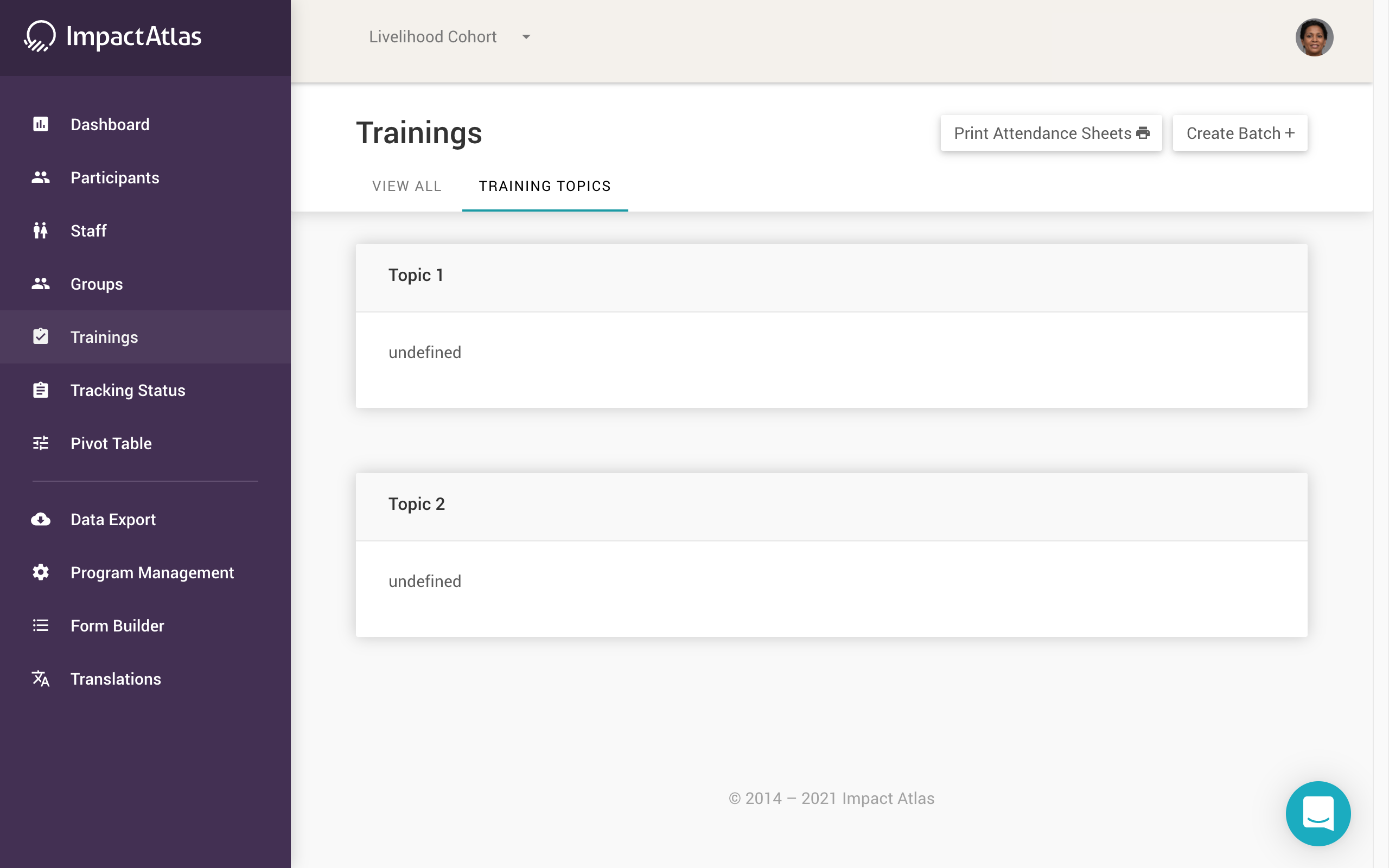 Before you create a new training or training batches, you need to create a new training topic on the platform.